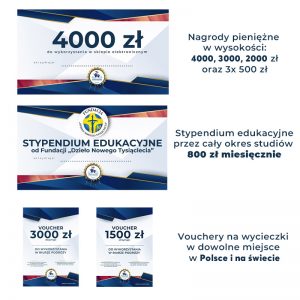 Nagrody dla laureatów i finalistów: INDEKSY na wyższe uczelnie NAGRODY PIENIĘŻNE NAGRODYrzeczowe NAGRODYksiążkowe Nagrody dla nauczycieli finalistów i laureatów: NAGRODYksiążkowe